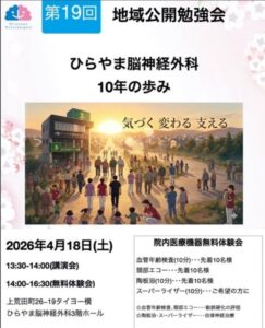今年は、【ひらやま脳神経外科 10年の歩み】と題して、4/18(土)13:30~第19回地域公開勉強会が開催されます💁